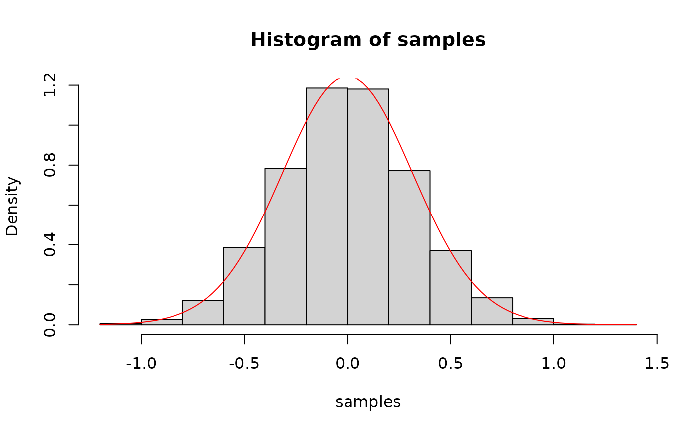 hist(samples, freq = FALSE)